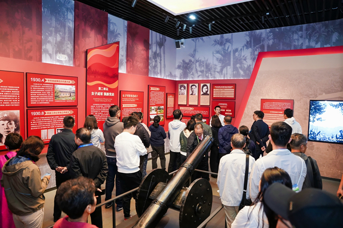 赛事期间,还开展了“百年工运·红色传承”主题展活动。在赛事起点及博览会区域设置主题展区,通过图文、影像、实物等形式展示中华全国总工会百年历程、海南解放75周年纪念展、红色娘子军历史文化展等,让广大职工跑友深度体验职工文化体育运动的独特魅力。